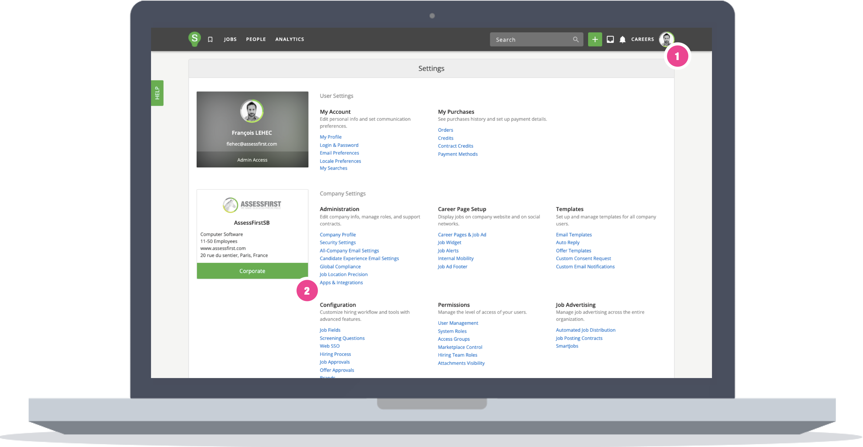 1. In your SmartRecruiters platform, go to ‘Settings / Admin’