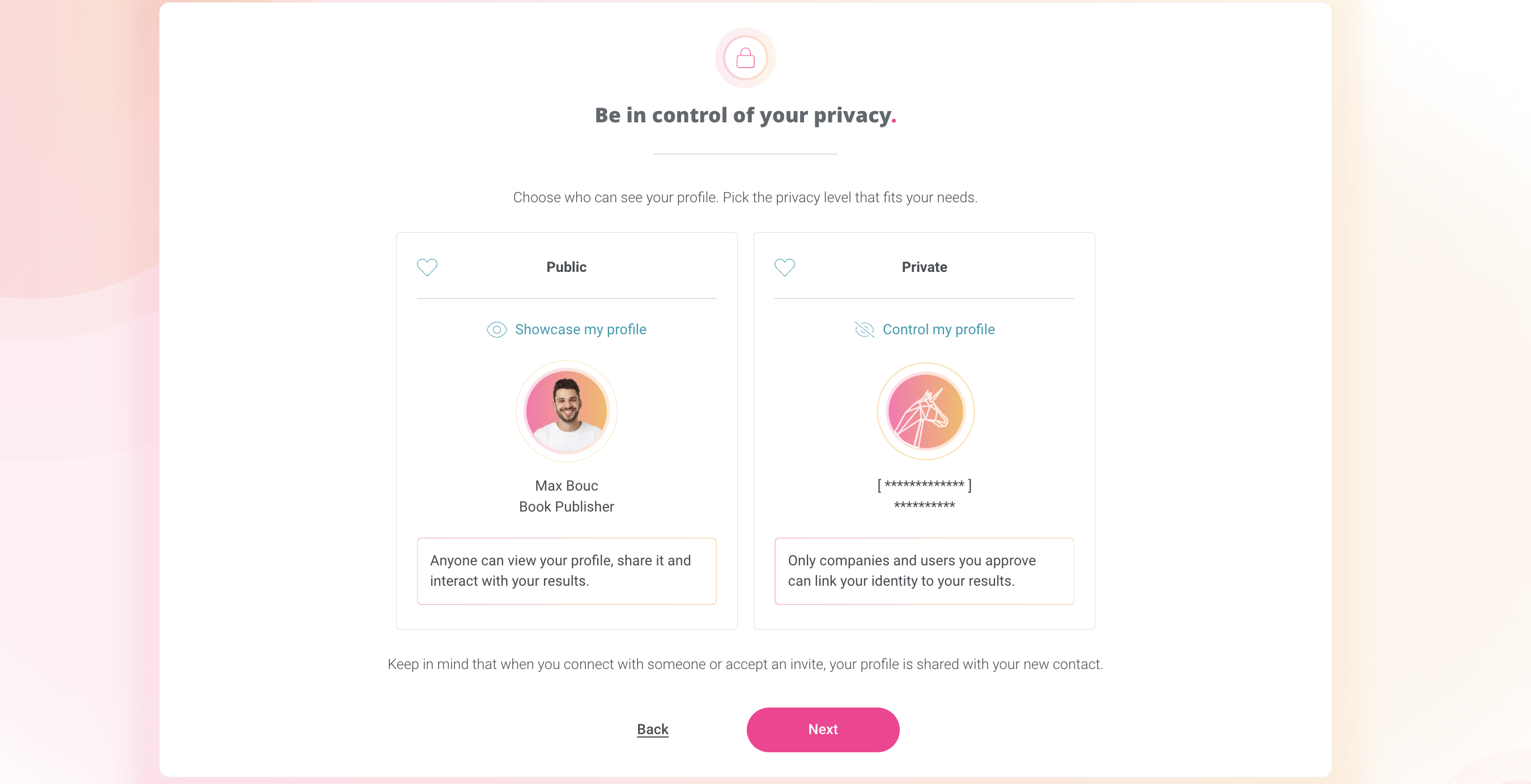 You have the choice between 2 levels of privacy (Public / Private). Note that this does not affect your recruiter’s invitation.