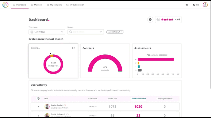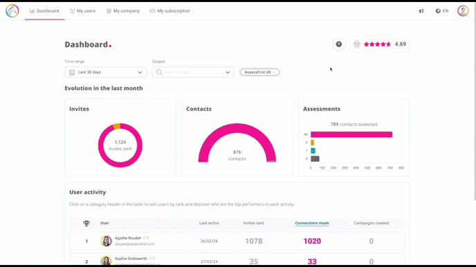 As an administrator, AssessFirst gives you access to your account data and to global and per-user statistics.