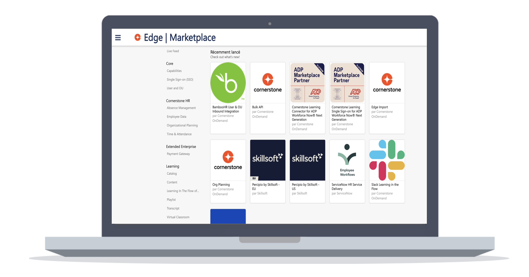 1/ In CornerStone, go to the navigation at the top right -> Admin -> Tools -> EDGE -> Marketplace and click on the AssessFirst Card.