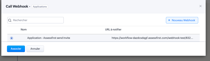 → Add a Webhook-type “Instant Action” and select the previously created Webhook: