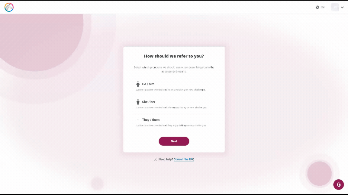 Once you've accepted or declined the invitation, you'll need to choose a pronoun (you can change this at any time in your profile settings).