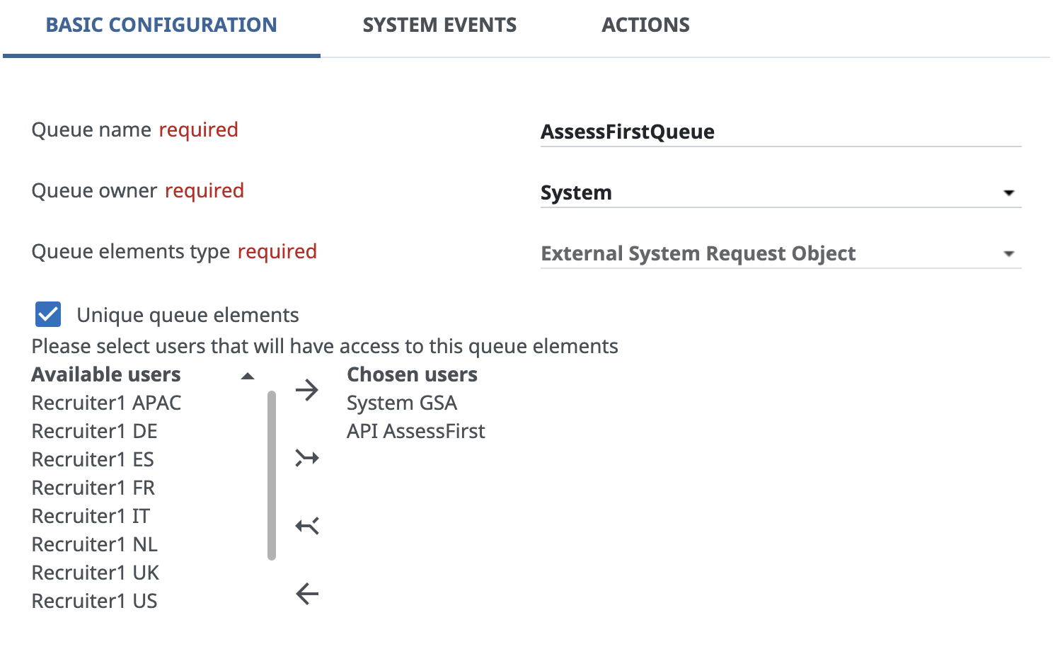 3/ We created a queue named “AssessFirstQueue”, so the integration can retrieve the necessary information for the integration. Can you add the following fields to this queue: