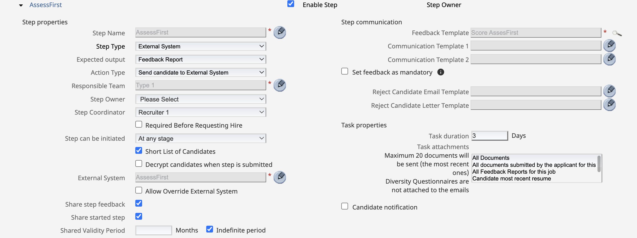 1/ We added a step “AssessFirst” in our hiring steps, can you link it to the External system “AssessFirst” created by this integration?