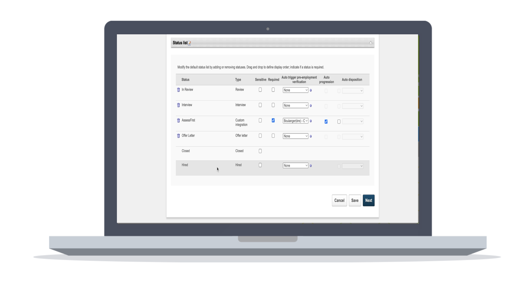 Once this has been done, AssessFirst will appear in the "Status list" section.