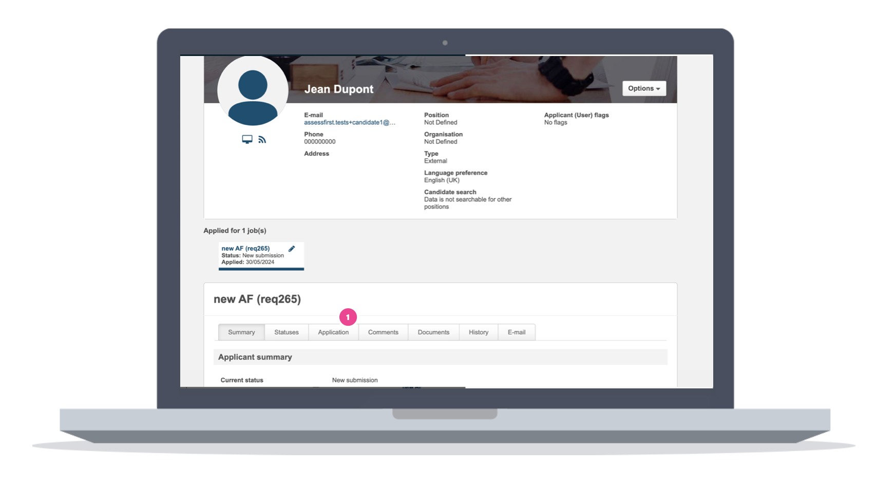 You will obtain the results of the 3 questionnaires with the adequacy score. The overall adequacy score and the link to AssessFirst "View detail" which will redirect you to the results in PDF (1).