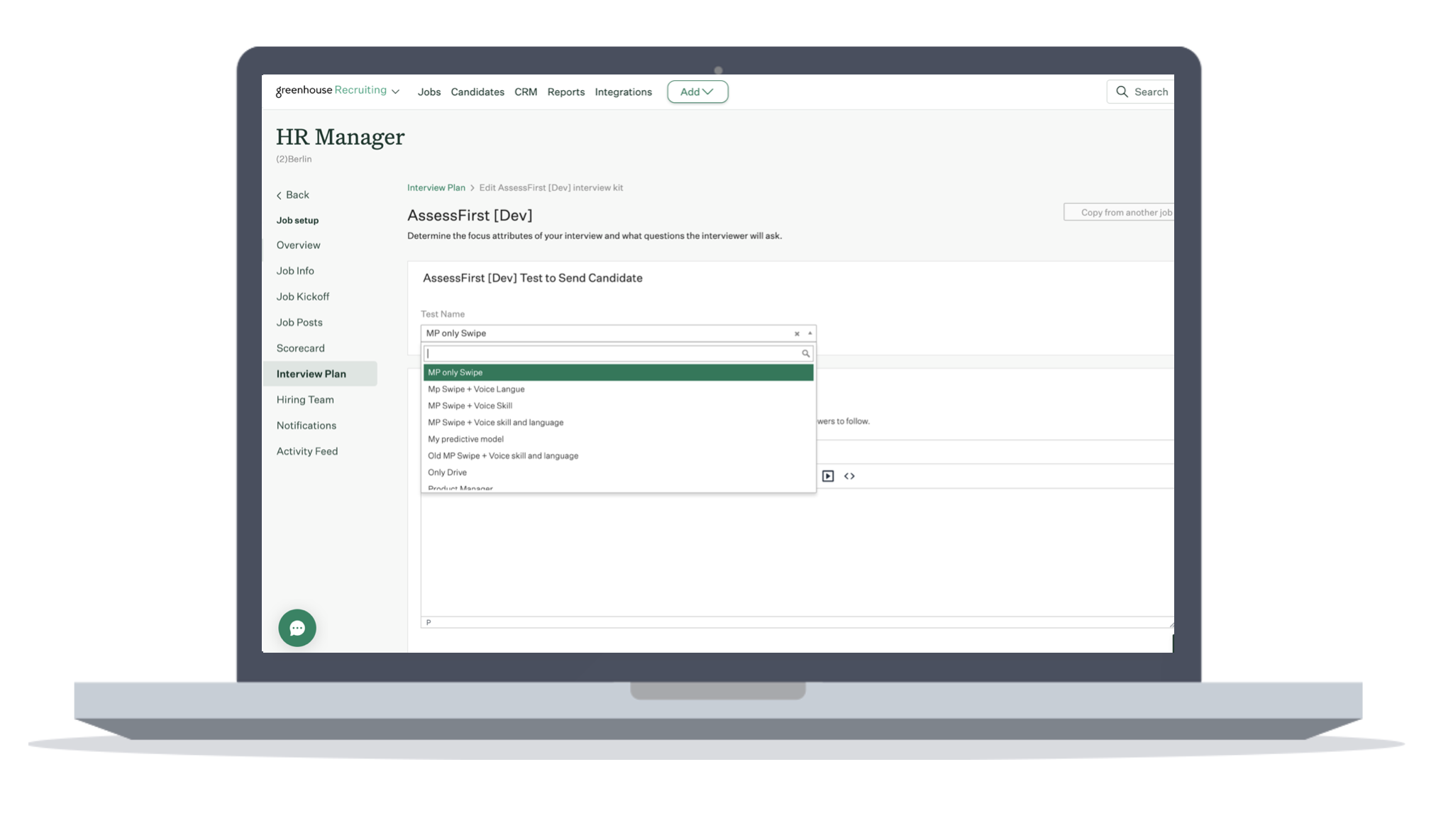 - When creating a position, you can add AssessFirst at the “Job setup” stage.