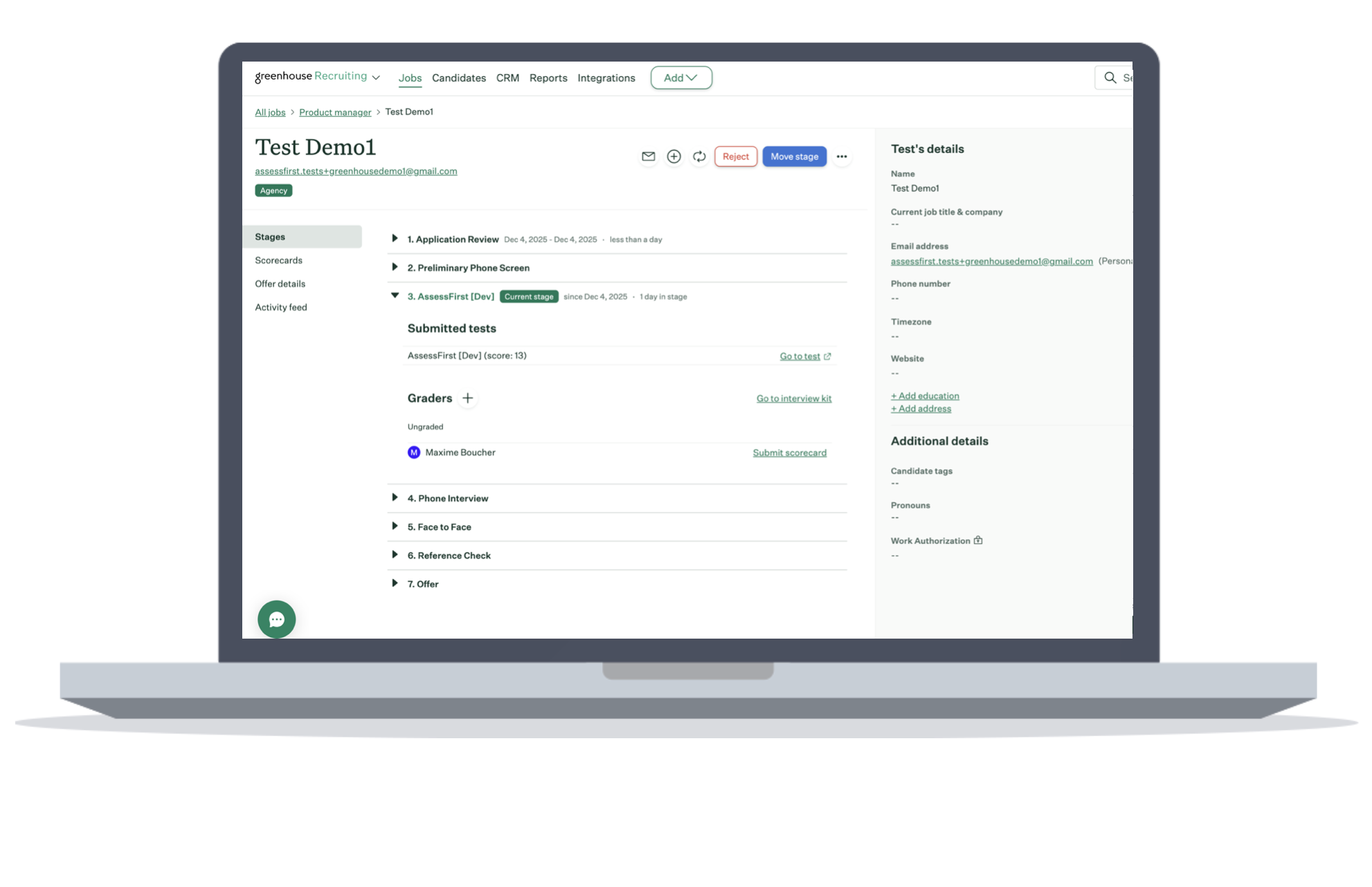 1. Once the candidate has completed the assessments, you can return to the candidate's file in Greenhouse.