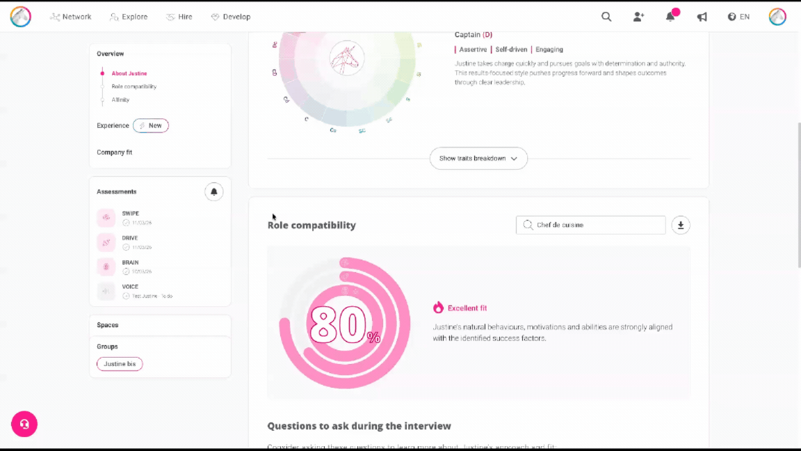 - In the candidate's profile, click the “Role compatibility” tab