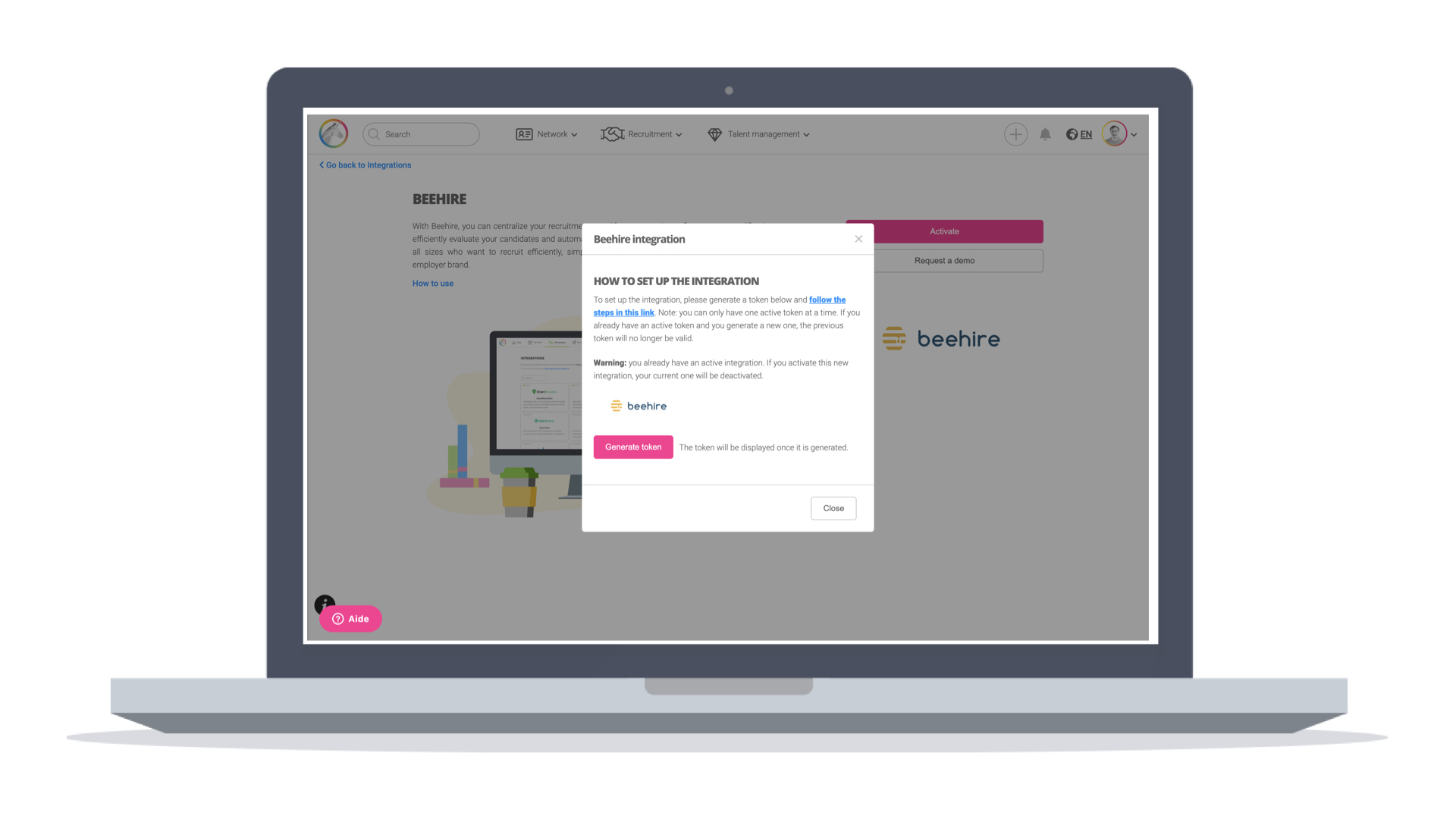 When you click Activate Integration. A page opens, follow the information on the screen to complete the activation of your integration.