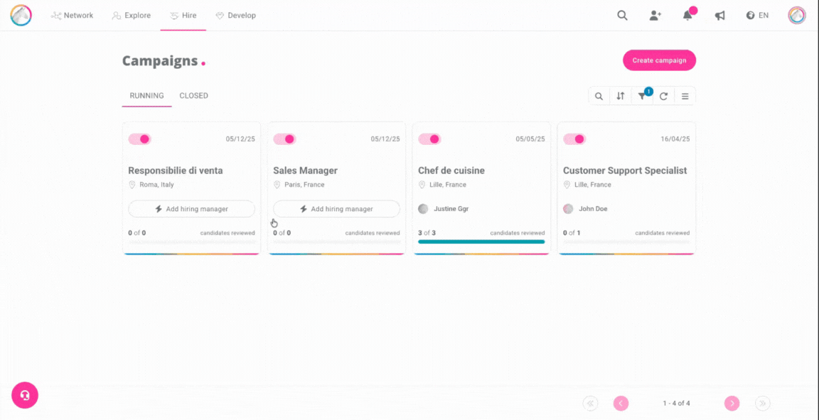 Easily modify your recruitment campaigns in just two clicks. From the list of your campaigns, click on "Edit", make the necessary adjustments, then save the changes.