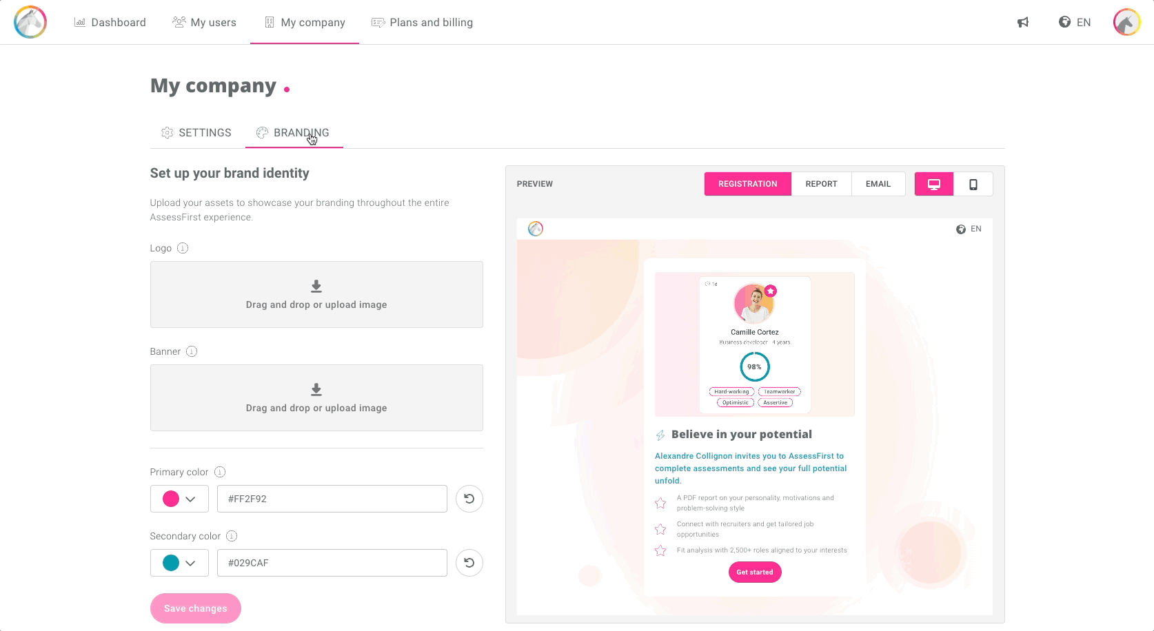 We have developed the ability to personalize your AssessFirst experience for you and your candidates.