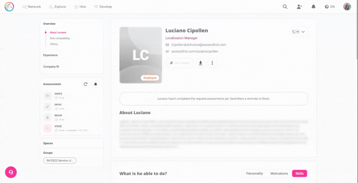 VOICE results can be accessed from the “Skills” tab, where you will find the following information: