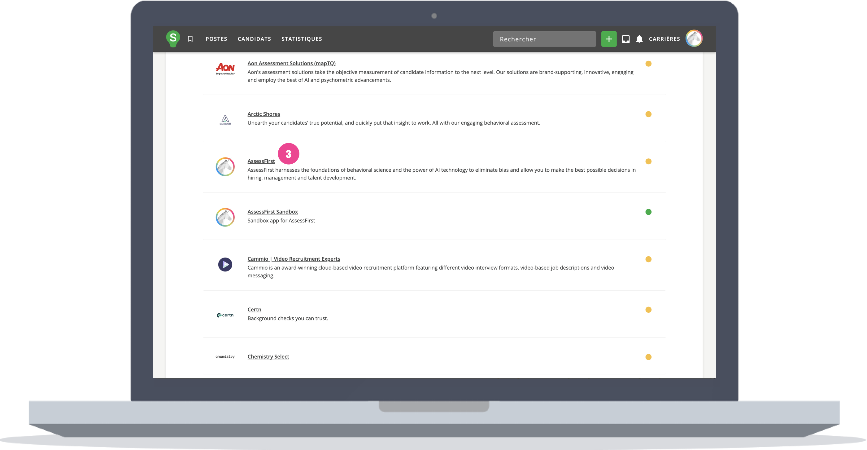 3. Sélectionnez « AssessFirst » dans la marketplace SmartRecruiters
