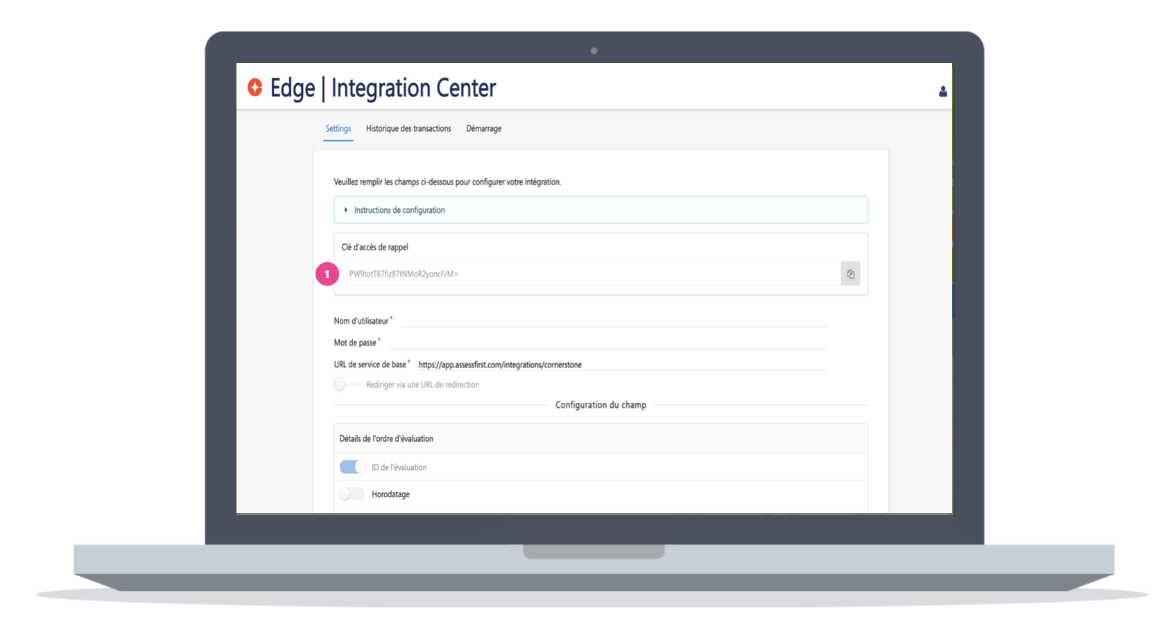 Une fois la clé copiée, vous pouvez vous rendre sur la marketplace AssessFirst avec un compte administrateur.