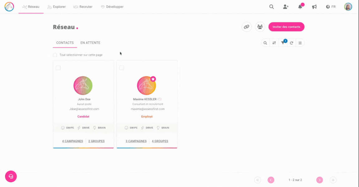 Côté Recruteur, vous avez plusieurs rapports complets que vous pouvez envoyer par email aux candidats directement depuis la plateforme.
