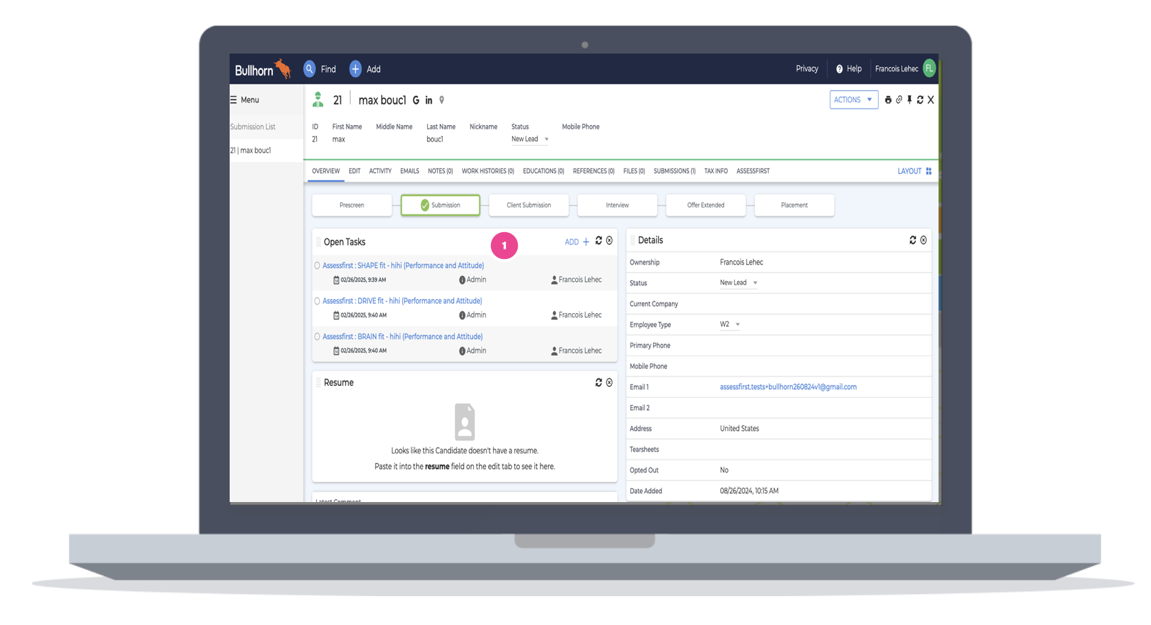 Pour savoir comment activer l'intégration avec Bullhorn, cliquez ici.