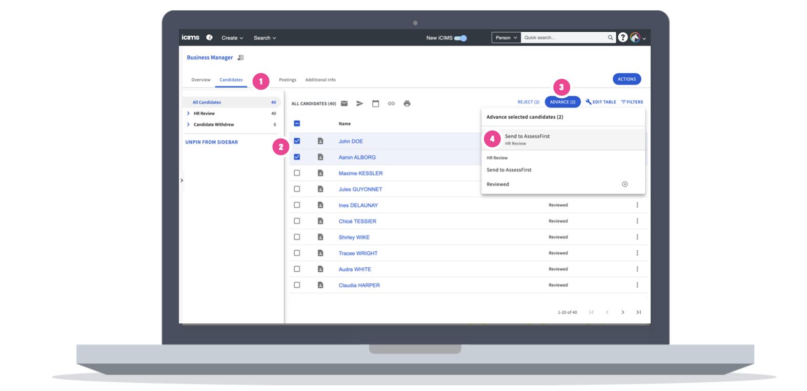 4. Puis validez votre invitation grâce au bouton « Send to AssessFirst »