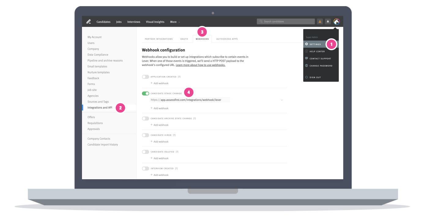 Pour apprendre à activer l'intégration avec Lever, cliquez ici.