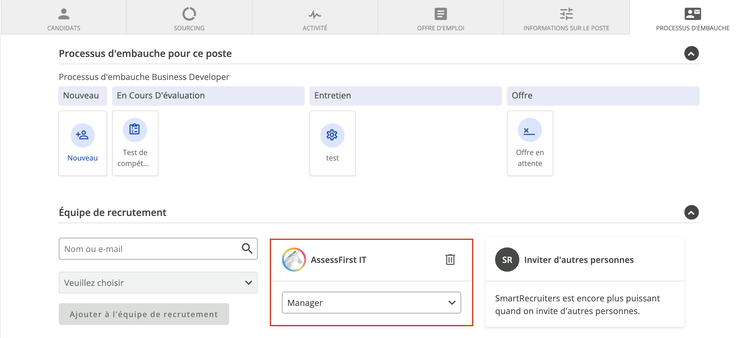 ⚠️ Le manager de l'offre doit obligatoirement avoir un compte recruteur sur AssessFirst