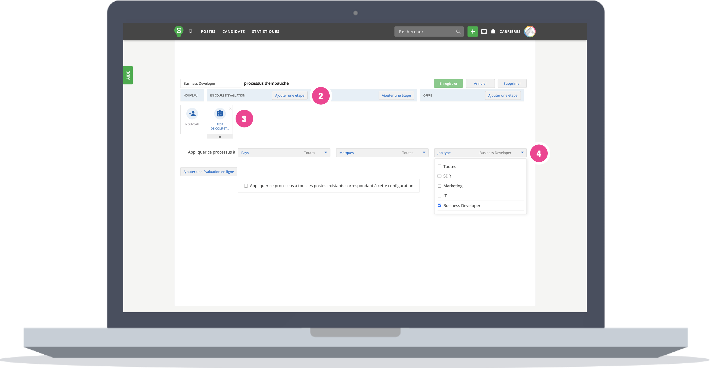 Tout d’abord, veillez à bien paramétrer un processus d’embauche pour le poste en question :
