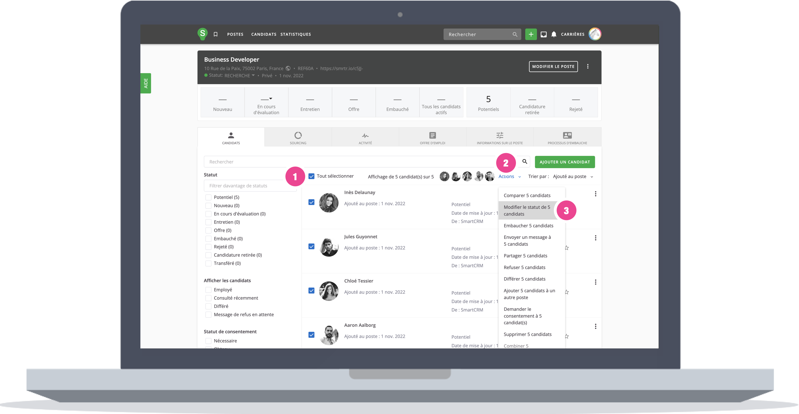 4. Enfin, modifiez le statut des candidats vers « Test de compétences »