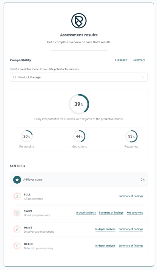 DRIVE fit: 38% | In-depth analysis : app.assessfirst.com/download/drive (Get report ID 8)