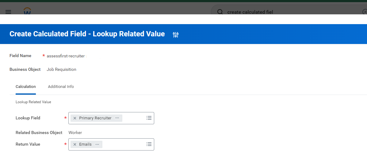 Pour la création des systèmes d'intégration qui suivent, nous aurons besoin de créer un champ calculé qui indiquera l'email du recruteur de la demande d'emploi. Pour ce faire, suivez les étapes suivantes :