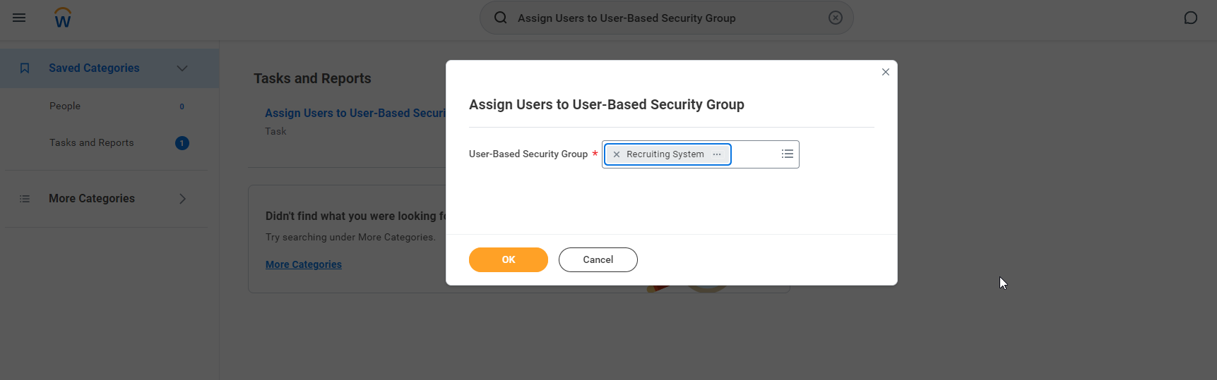 Dans Workday, les systèmes de recrutement et de ressources humaines sont deux groupes de sécurité créés par Workday pour permettre à des tiers d'intégrer les données de recrutement et de ressources humaines de votre locataire. Nous aurons besoin que notre utilisateur ait accès aux deux :