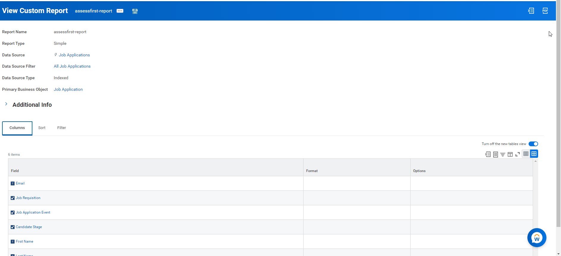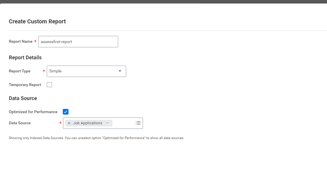 Une de nos exigences techniques pour l'intégration est de créer un rapport personnalisé. Cela nous permet d'économiser plusieurs appels à l'API Workday et d'éviter l'utilisation ou les tâches récurrentes pour appeler les serveurs Workday.