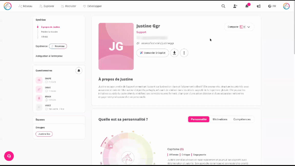 - Dans le profil du candidat, cliquez sur l'onglet "Prédire la réussite"