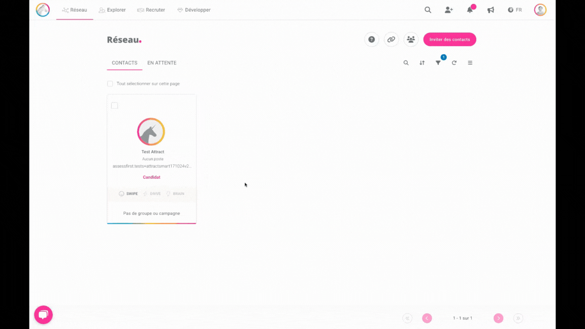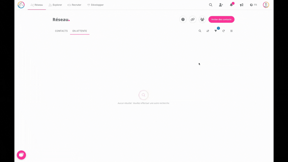 - Cliquer sur le bouton rose "Inviter un contact" à droite de l'onglet réseau.