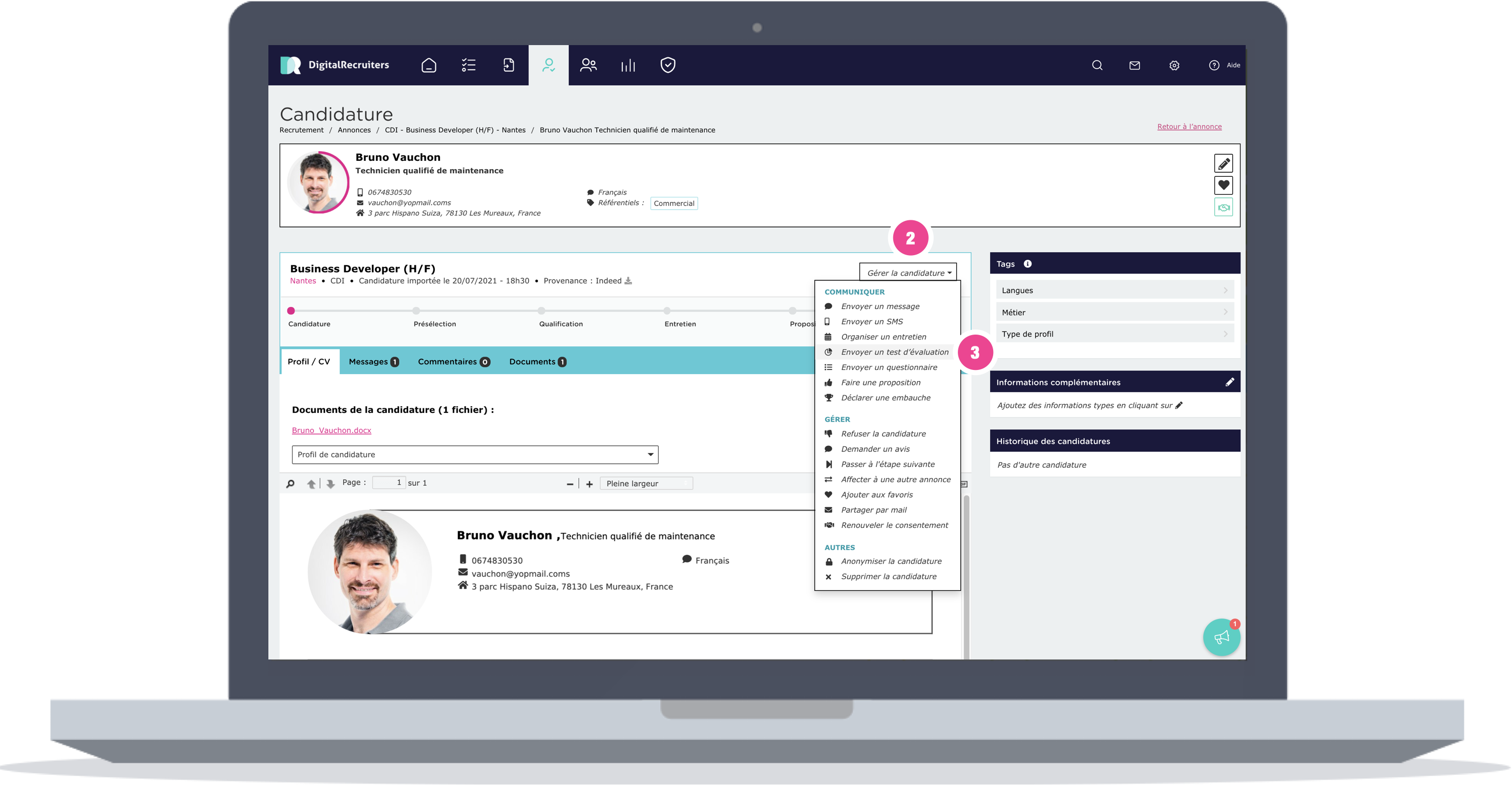 1. Allez sur le profil du candidat