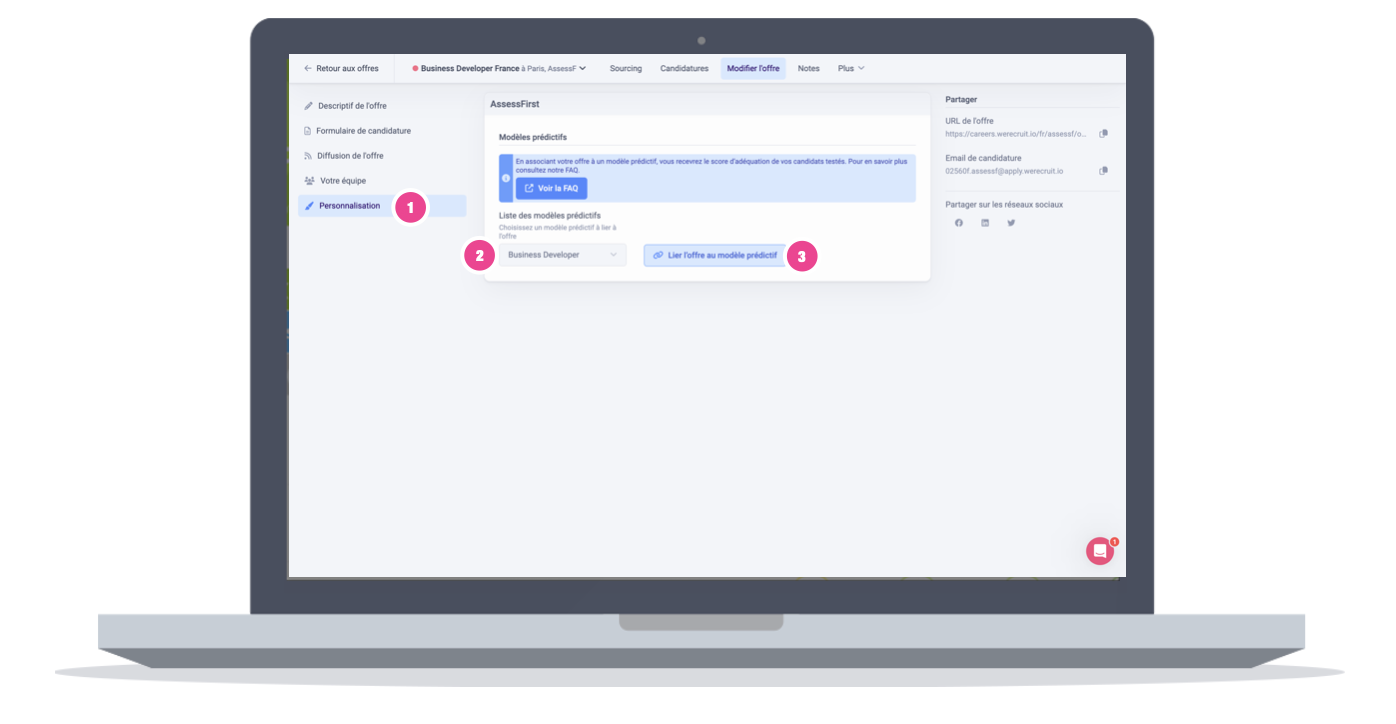 Si vous avez configuré un modèle prédictif à votre Offre d’emploi :