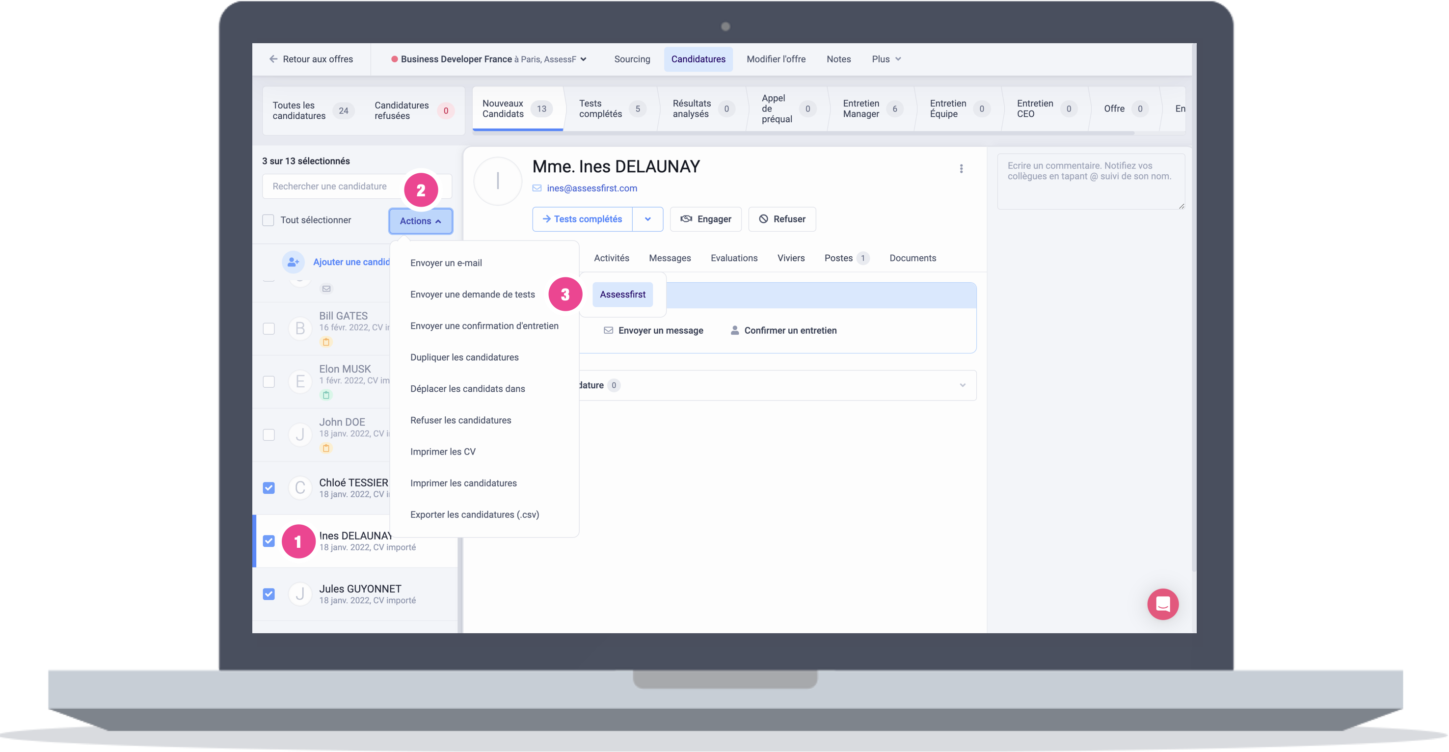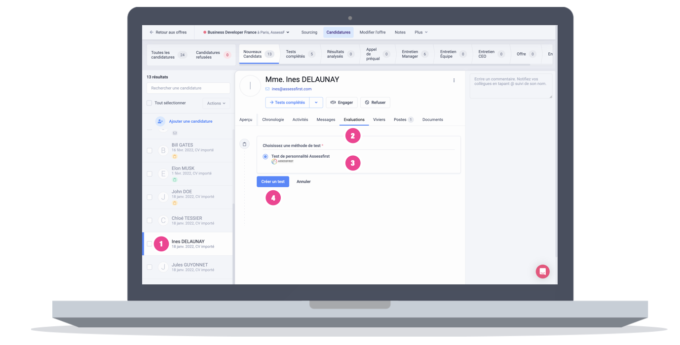 3. Cliquez sur « Envoyer une demande de test » et sélectionnez « AssessFirst »