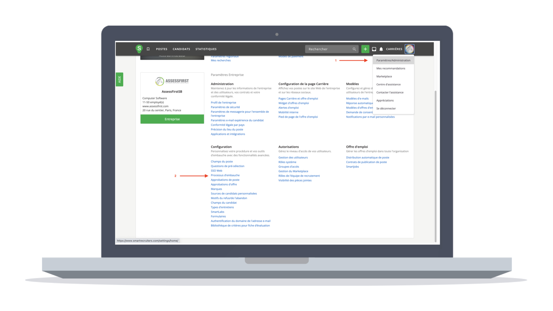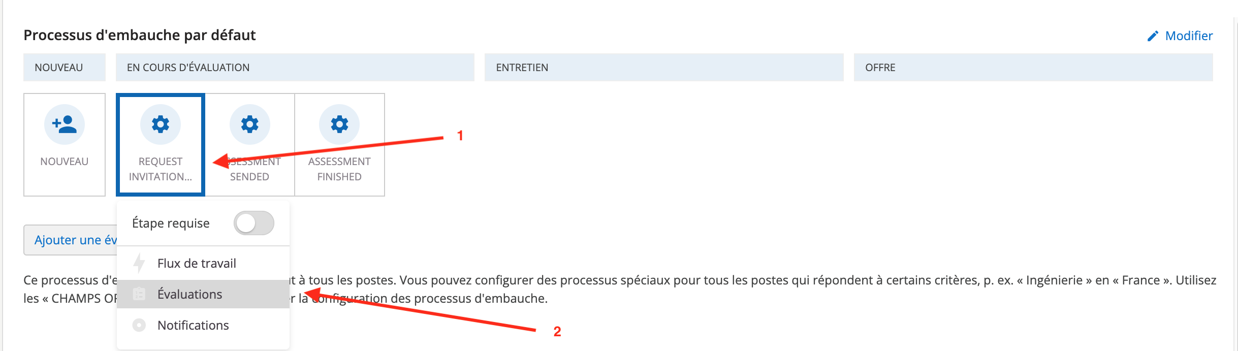 Pour cela le paramétrage des processus de recrutement doit être fait.