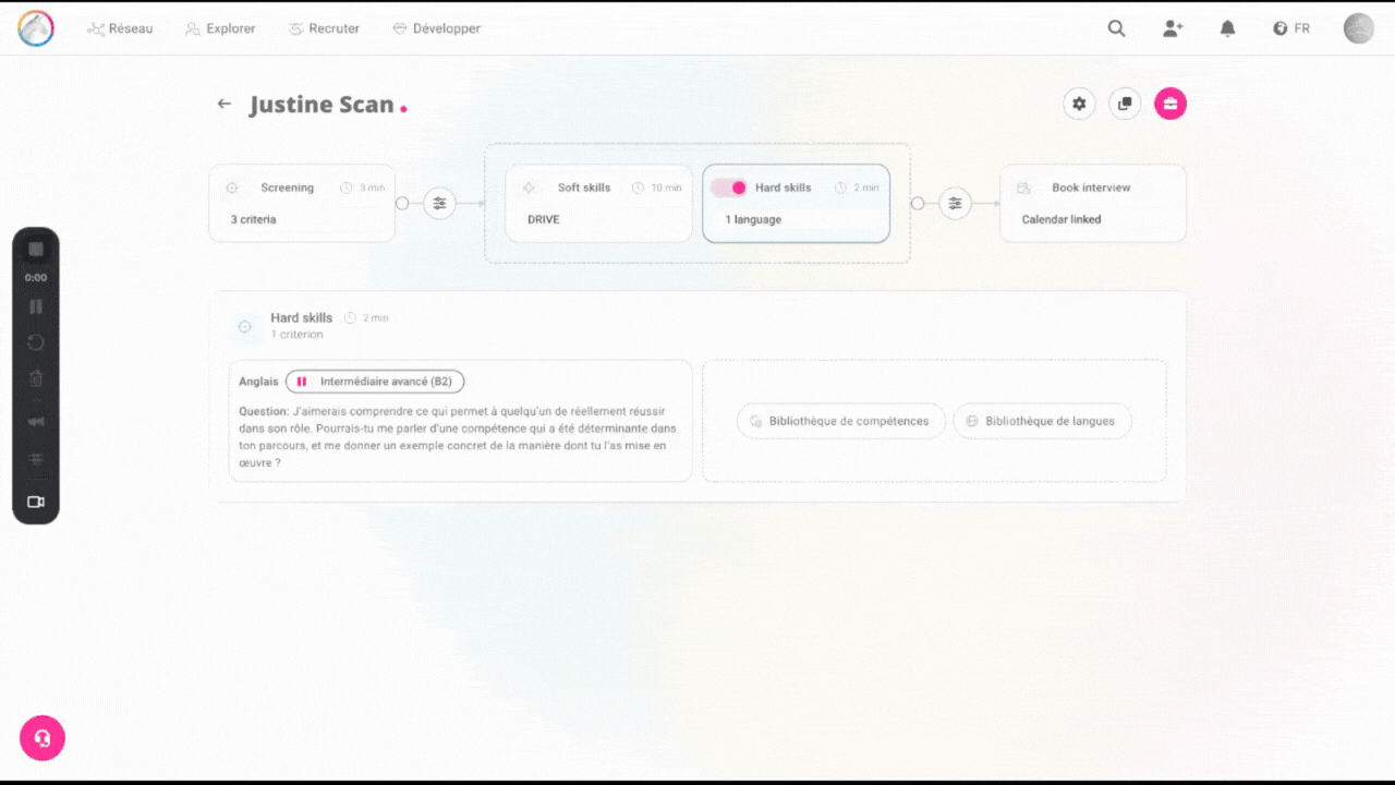 Vos candidats reçoivent une invitation par email et notre agent IA mène ensuite les entretiens avec eux pour qualifier les critères que vous avez défini. Cet entretien dure maximum 15 minutes, et comprend un temps de questions-réponses à la fin.