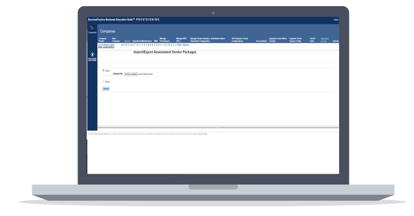 - Sur la page de votre company, accéder à la page "Import/Export Assessment Vendor Packages"