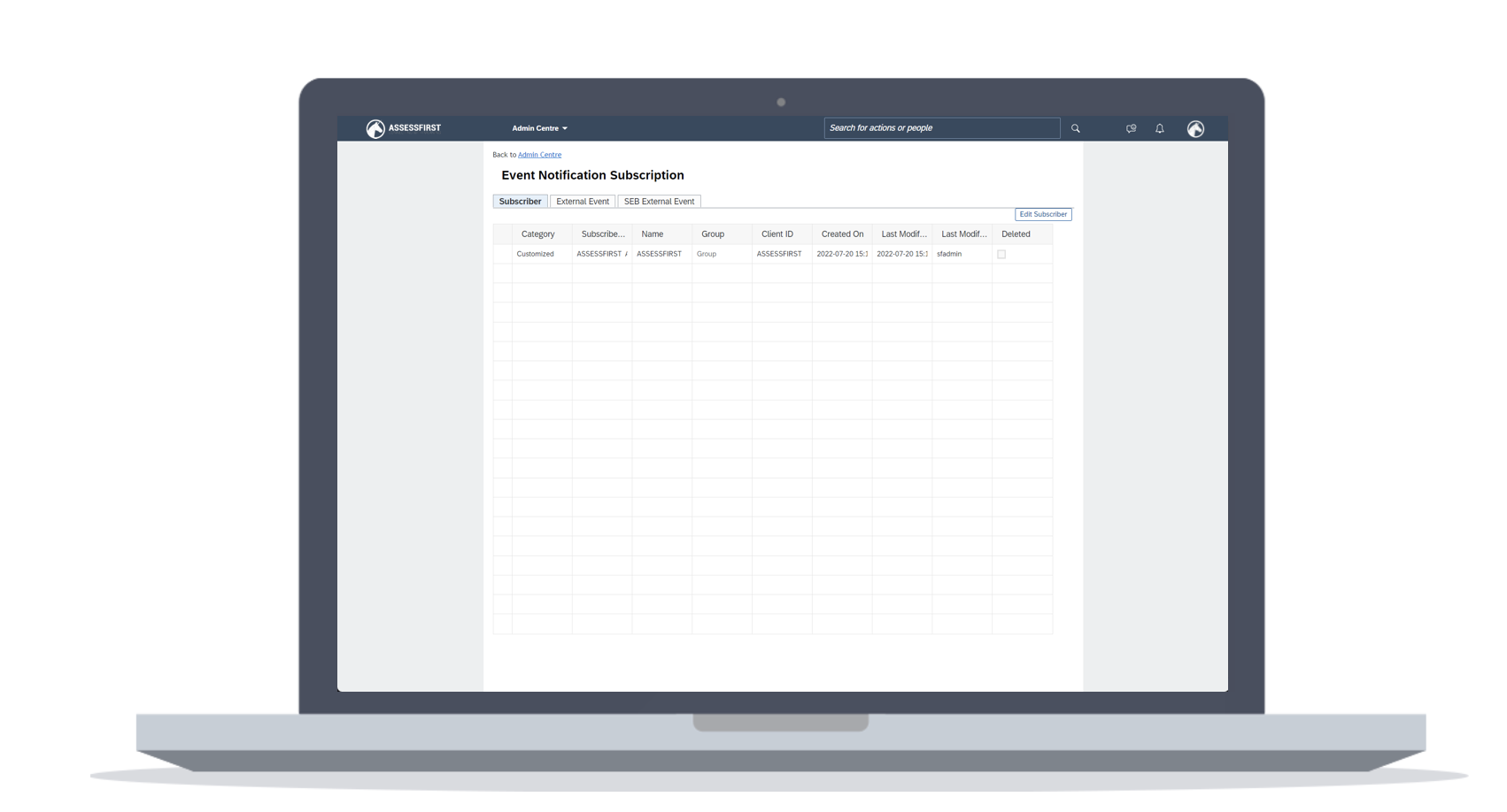 - Allez à la page "Abonnement aux notifications d'événements" et ajoutez un abonné avec les informations suivantes :