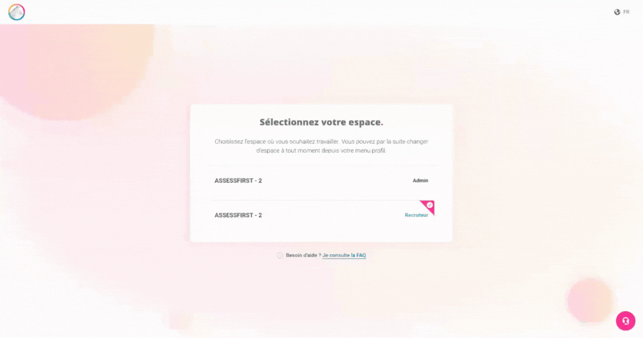 À tout moment, depuis n'importe quelle page de la plateforme, un utilisateur disposant des droits Admin et/ou Recruteur pourra passer d’un espace à un autre directement depuis le menu de son avatar en haut à droite.
